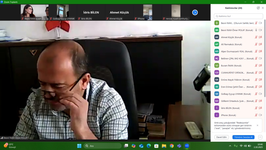 Gölbaşı'nda görev yapan rehber öğretmen/psikolojik danışmanlarla sene başı ilçe koordinasyon toplantımızı 2.10.2025 tarihinde çevrimiçi gerçekleştirdik. Toplantı RAM müdürü Ömer POLAT ve Rehberlik ve Psikolojik Danışma Hizmetleri bölüm başkanı Aysel KATARCI başkanlığında yürütülmüştür. Toplantıda 2024-2025 eğitim öğretim döneminde yapılan çalışmalar değerlendirilirken, 2025-2026 eğitim öğretim döneminde yapılması planlanan çalışmaların paylaşımı yapıldı. Katılımlarında dolayı tüm rehber öğretmen/psikolojik danışmanlarımıza teşekkür ederiz.